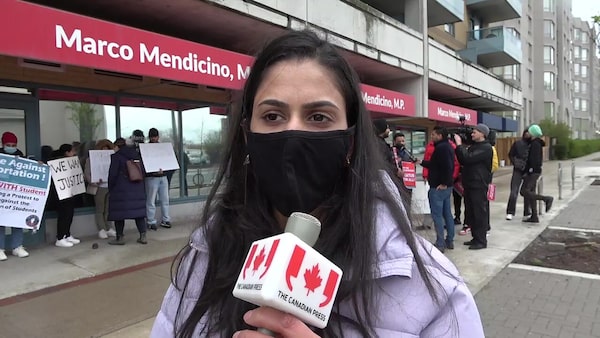 Karamjeet Kaur, a 25-year-old former international student from India, is facing deportation. Kaur is shown in this still from a video interview in Toronto, where students protested deportation, May 3, 2023.Kiernan Green/The Canadian Press