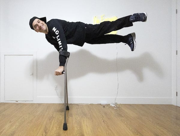 Luca Patuelli, co-chair of Disability Without Poverty, does one of his signature dance moves at his home in Boucherville, Que.Christinne Muschi/The Globe and Mail