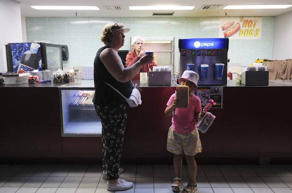 Bernie Gurberg at the doors of the Dollar Cinema in Montreal, on July 20.Christinne Muschi/The Globe and Mail