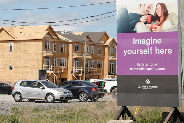 A real estate sign stands in front of new homes being constructed in Ottawa on May 27, 2021.PATRICK DOYLE/Reuters