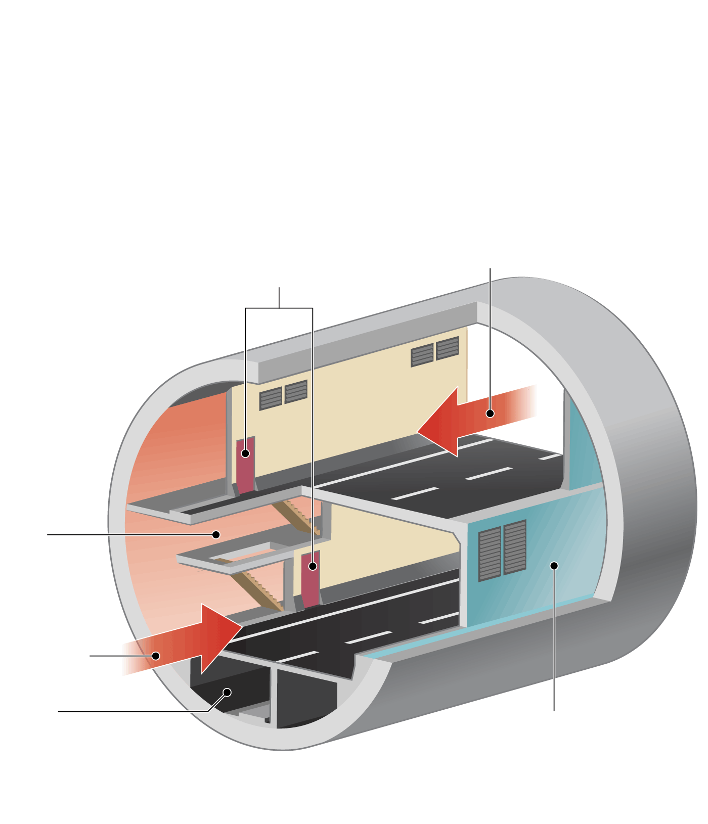 To build on and off ramps at intersections would require slower or more expensive excavation techniques, such as the use of spray concrete while digging out an exit, or “cut and cover,” which involves digging a trench from the surface, he said. Massive ventilation systems, needed to whisk all the tailpipe emissions away, can require 30 or 40-metres-high tower structures above ground.