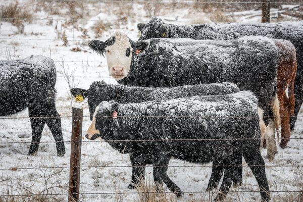 Snow-covered cattle stand in a pasture near Didsbury, Alta., on Oct. 23.Jeff McIntosh/The Canadian Press