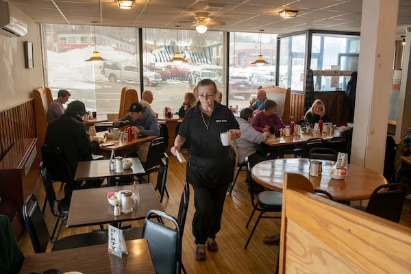 Heather Richer prepares tables for patrons at her restaurant Mum's Place in Elliot Lake, Ont. Her restaurant was originally located in the Algo Centre Mall when it collapsed in 2012.Photography by Cory Wright/The Globe and Mail