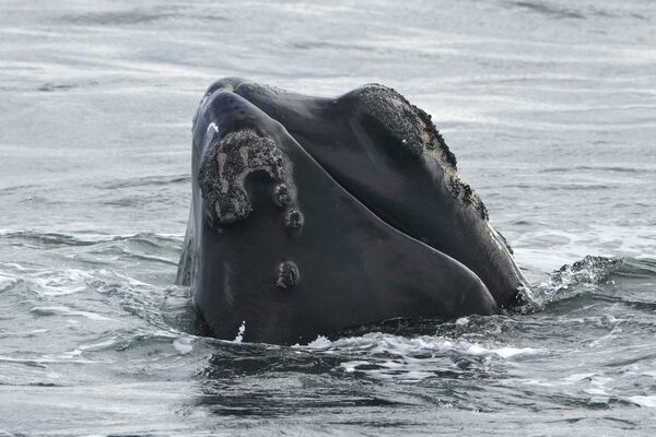 A North Atlantic right whale surfaces on Cape Cod Bay in Massachusetts on March 27.Robert F. Bukaty/The Associated Press