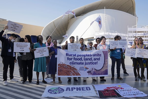 Activists demonstrate at the COP28 U.N. Climate Summit, on Dec. 6, in Dubai.Kamran Jebreili/The Associated Press