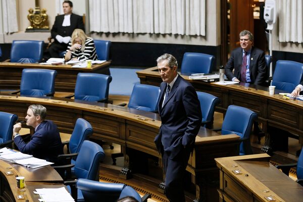 Manitoba Premier Brian Pallister makes his way to his seat during question period at the Manitoba Legislature in Winnipeg, Wednesday, May 6, 2020. A Manitoba Hutterite minister is telling the province to stop identifying colonies where members have tested positive for COVID-19 because it is leading to stigmatization.JOHN WOODS/The Canadian Press