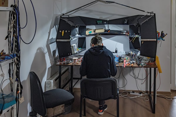 In Ternopil, one of Midgard's engineers works on a bench that survived the destruction of the company's old office near Kharkiv.Anton Skyba/The Globe and Mail