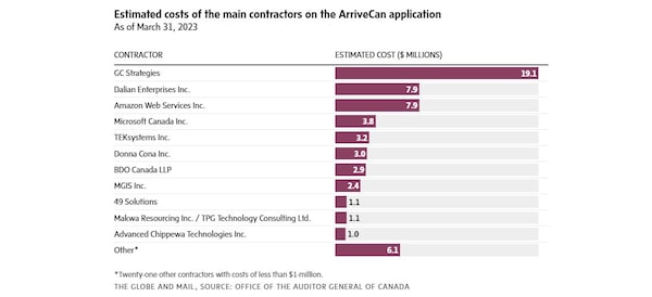 Auditor-General Karen Hogan’s report into federal spending on the ArriveCan app found what she called a “glaring disregard” for basic management practices and concluded that IT staffing firm GC Strategies was directly involved in setting narrow terms for a $25-million contract it ultimately won. The report, released today, was produced in response to a motion approved in the House of Commons in November, 2022, shortly after The Globe and Mail first revealed that the cost of the pandemic-era app for international travellers had climbed to at least $54-million.