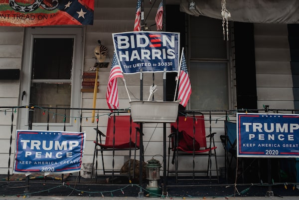 Biden and Trump campaign signs are seen on a home in Freemansburg, PA., on Monday, Oct. 26, 2020.Hannah Yoon/Globe & Mail
