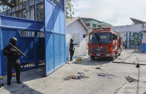Firefighters arrive to put out a small fire at the empty National Penitentiary as National Police patrol in downtown Port-au-Prince, Haiti, Haiti, March 14, 2024.Odelyn Joseph/The Associated Press