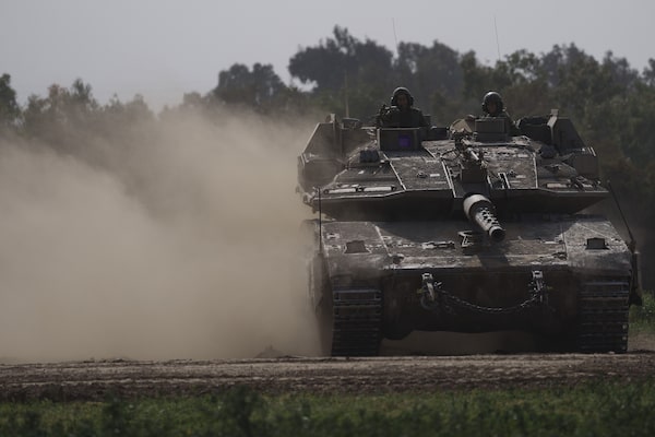 Israeli soldiers move on the top of a tank near the Israeli-Gaza border, as seen from southern Israel, Tuesday, Jan. 23, 2024.Leo Correa/The Associated Press