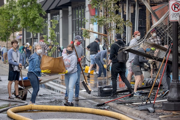 Hundreds of volunteers showed up to clean Friday, May 29, 2020, in St. Paul, Minn., following a night of unrest in the death of George Floyd in Minneapolis police custody.Elizabeth Flores/The Associated Press