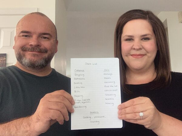 Chris Schneider and Catherine MacLellan of Peace River, Alta., share their divided chore list.handout (selfie)/Supplied