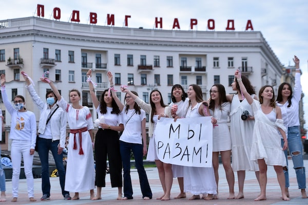 In response to a brutal police crackdown over the past week, hundreds of women formed human chains in Minsk to call for an end to the violence. Protestors have been on the streets since Sunday to challenge the re-election of authoritarian President Alexander Lukashenko. Lukashenko won 80 per cent of the vote in an election that many Belarusians and international observers say was not legitimate.