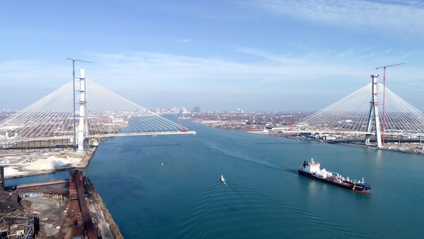 When that feat is accomplished, the bridge will form a continuous span over the waterway that flows between Detroit and Windsor, Ont. While the bridge is still more than a year away from opening, the connection of the two halves signals a new era. For the first time in nearly a century, North America’s busiest border crossing is expanding – and it is doing so in grand style.