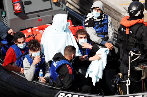 Migrants rescued from the English Channel by UK Border Force arrive at the harbour in Dover, Britain, Sept. 13, 2021.PETER NICHOLLS/Reuters