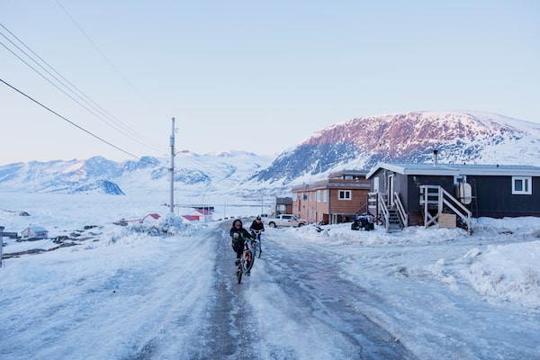Teens ride their bikes around town in the evening in Pangnirtung, Nunavut on May 13, 2022.Pat Kane/The Globe and Mail