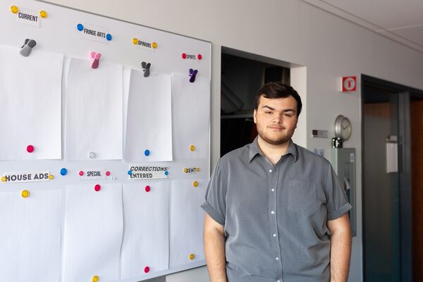 Zachary Fortier, news editor at The Link, in the newsroom on Concordia University campus on June 28, 2022. Karene-Isabelle Jean-Baptiste/The Globe and MailKarene-Isabelle Jean-Baptist/The Globe and Mail