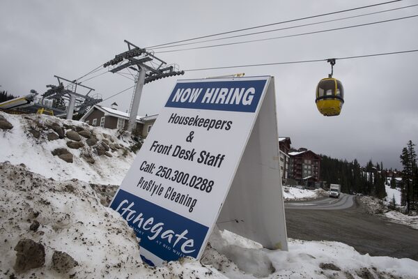 A help wanted sign in Big White village, near Kelowna, B.C.Lucas Oleniuk/The Globe and Mail