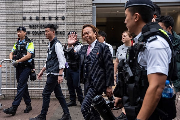 Lawrence Lau, a former pro-democracy district councilor, leaves the West Kowloon Magistrates' Courts in Hong Kong, where 14 pro-democracy activists were convicted in Hong Kong’s biggest national security case. Lau and one other were acquitted, but prosecutors intend to appeal that decision.Chan Long Hei/The Associated Press