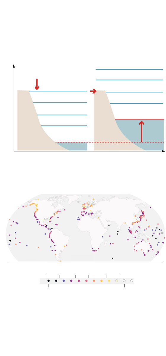 Dr. Milne and his colleagues have calculated that this effect will add nearly 20 centimetres to a sea-level rise of 30 centimetres expected by the end of century. While that may not seem like much in a part of the world where the tide is measured in metres, what matters more is the frequency of storm-driven high-water, which threatens lives and infrastructure. As the average sea level rises, these high water events that were formerly seen once per century will eventually come yearly.