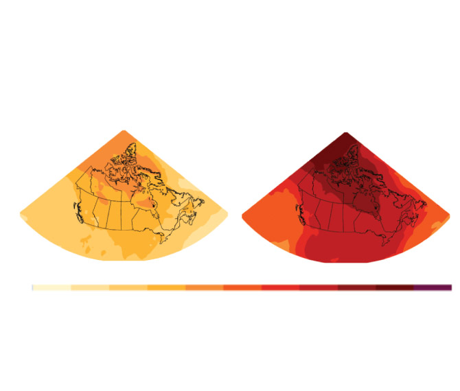 Exactly how much hotter depends on which path the world takes to reduce carbon emissions. But Canada will warm at about twice the global average and the Arctic will warm at three times that rate. Severe heat will be a growing problem in cities that are not used to it. Under a high-emissions scenario, the average number of days above 30 degrees in Montreal, which experienced 66 heat-related deaths last year, will increase five-fold by 2080.