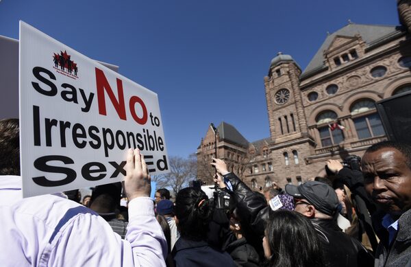 Thousands of people gathered outside the Ontario Legislature on April 14, 2015, to protest the provincial government’s proposed sex-ed curriculum.Fred Lum/The Globe and Mail