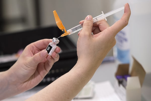 The Pfizer-BioNTech COVID-19 vaccine is prepared at a vaccination clinic in Dartmouth, N.S., on June 3, 2021.Andrew Vaughan/The Canadian Press