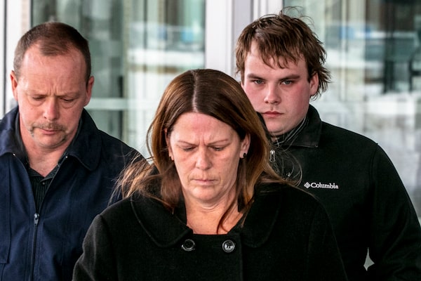 Brayden Bushby, right, exits the Thunder Bay Courthouse accompanied by his parents after the ruling that he would stand a three week murder trial, on Jan. 21, 2019,DAVID_JACKSON/The Globe and Mail