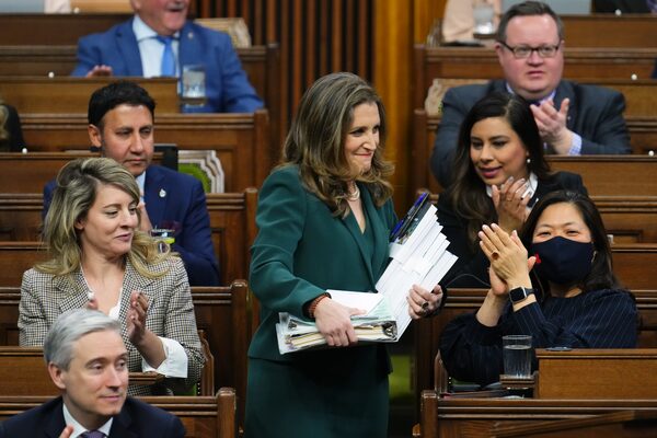 Deputy Prime Minister and Minister of Finance Chrystia Freeland arrives to deliver the federal budget in the House of Commons on March 28.Sean Kilpatrick/CP