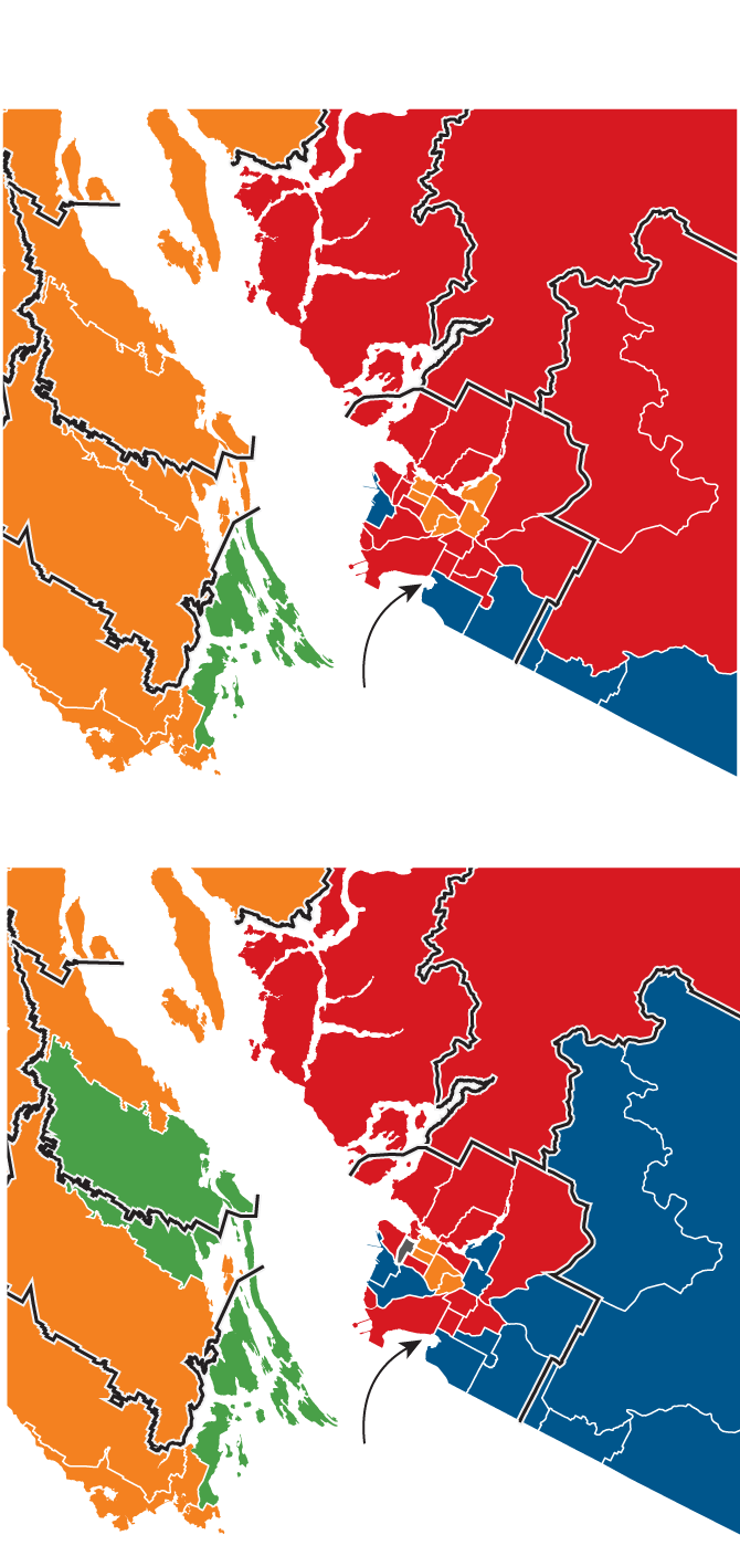 ELECTION RESULTS 2015 VS. 2019, VANCOUVER AREA