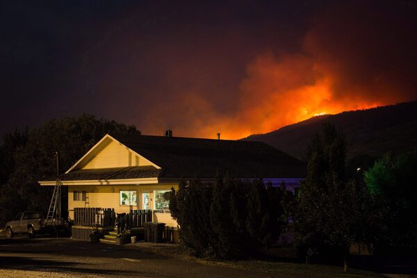 A wildfire burns on a mountain behind an RV park office in Cache Creek, B.C., on July 8, 2017.DARRYL DYCK/The Canadian Press