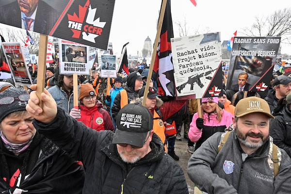Protesters rally against a federal firearm ban and buyback program in front of the legislature in Quebec City, on Feb. 28.Jacques Boissinot/The Canadian Press