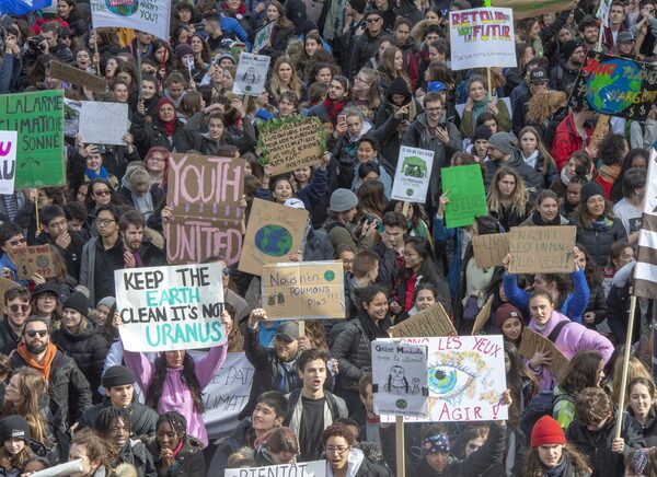 Students hold a demonstration to protest against climate change, on March 15, 2019 in Montreal, Que. Government lawyer Ginette Gobeil said that while climate change represents a major challenge and young people are encouraged to get involved in combatting it, the courts shouldn’t interfere in the legislative and political process.Ryan Remiorz/The Canadian Press