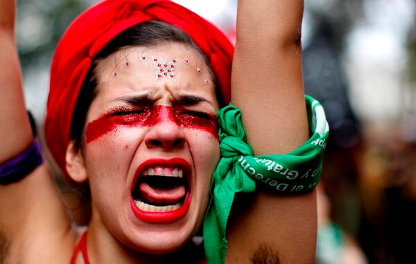 A woman shouts slogans walking to Congress during a march to commemorate the International Women's Day in Buenos Aires, Argentina, on March 9, 2020.The Associated Press
