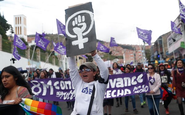 A woman shouts slogans during the International Women's Day march in La Paz, Bolivia, on March 9, 2020.Juan Karita/The Associated Press