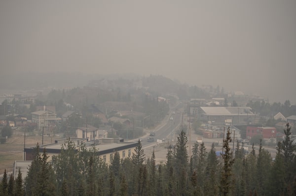 Heavy smoke from nearby wildfires fills the sky in Yellowknife on Tuesday, August 15, 2023. THE CANADIAN PRESS/Angela GzowskiAngela Gzowski/The Canadian Press