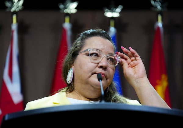 AFN National Chief Cindy Woodhouse Nepinak takes part in a press conference on Parliament Hill in Ottawa on Wednesday, June 11, 2025. THE CANADIAN PRESS/Sean KilpatrickSean Kilpatrick/The Canadian Press
