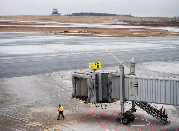 A worker walks on the tarmac at the Halifax Stanfield International Airport, in Halifax on Thursday, Jan. 4, 2018. An aircraft incident at the Halifax Stanfield International Airport caused temporary delays to all flight operations Saturday night.Andrew Vaughan/The Canadian Press
