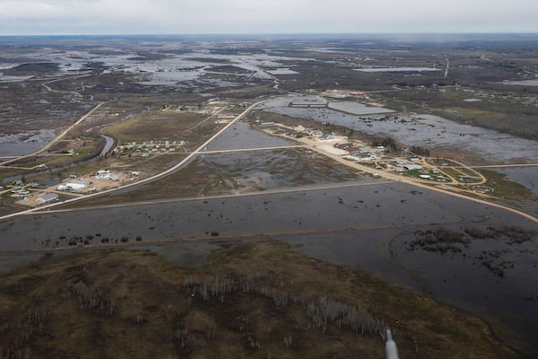 Peguis First Nation is shown surrounded with Fisher River flood water north of Winnipeg, May 15, 2022. The community is highly susceptible to flooding, given its location along the Fisher River and the low-lying land on which the First Nation is builtJOHN WOODS/The Canadian Press