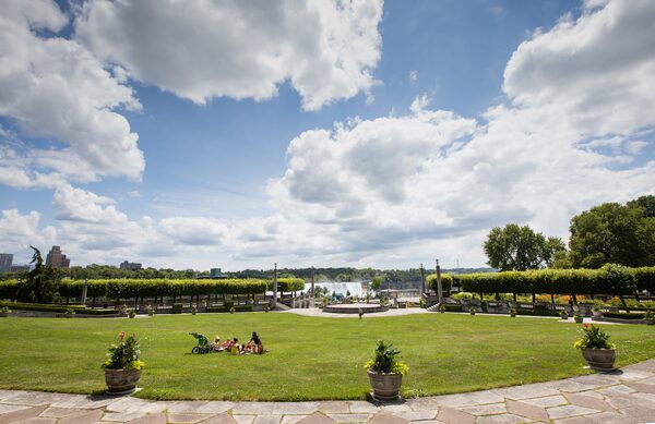 With few tourists around, locals have once-busy parts of Niagara Falls to themselves. This family got to have a picnic alone on the lawn of Oakes Garden Theatre, a popular wedding venue.