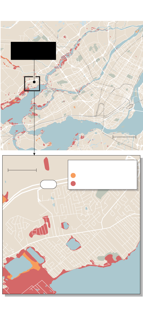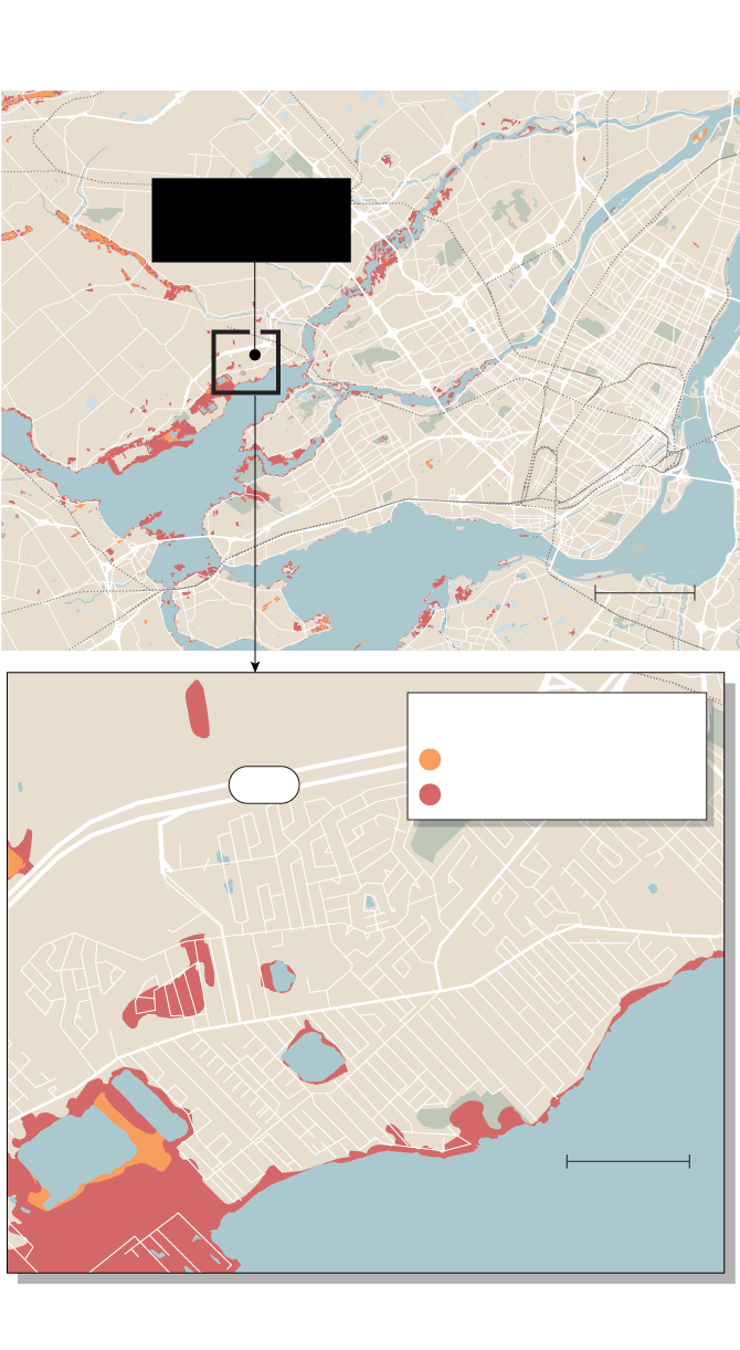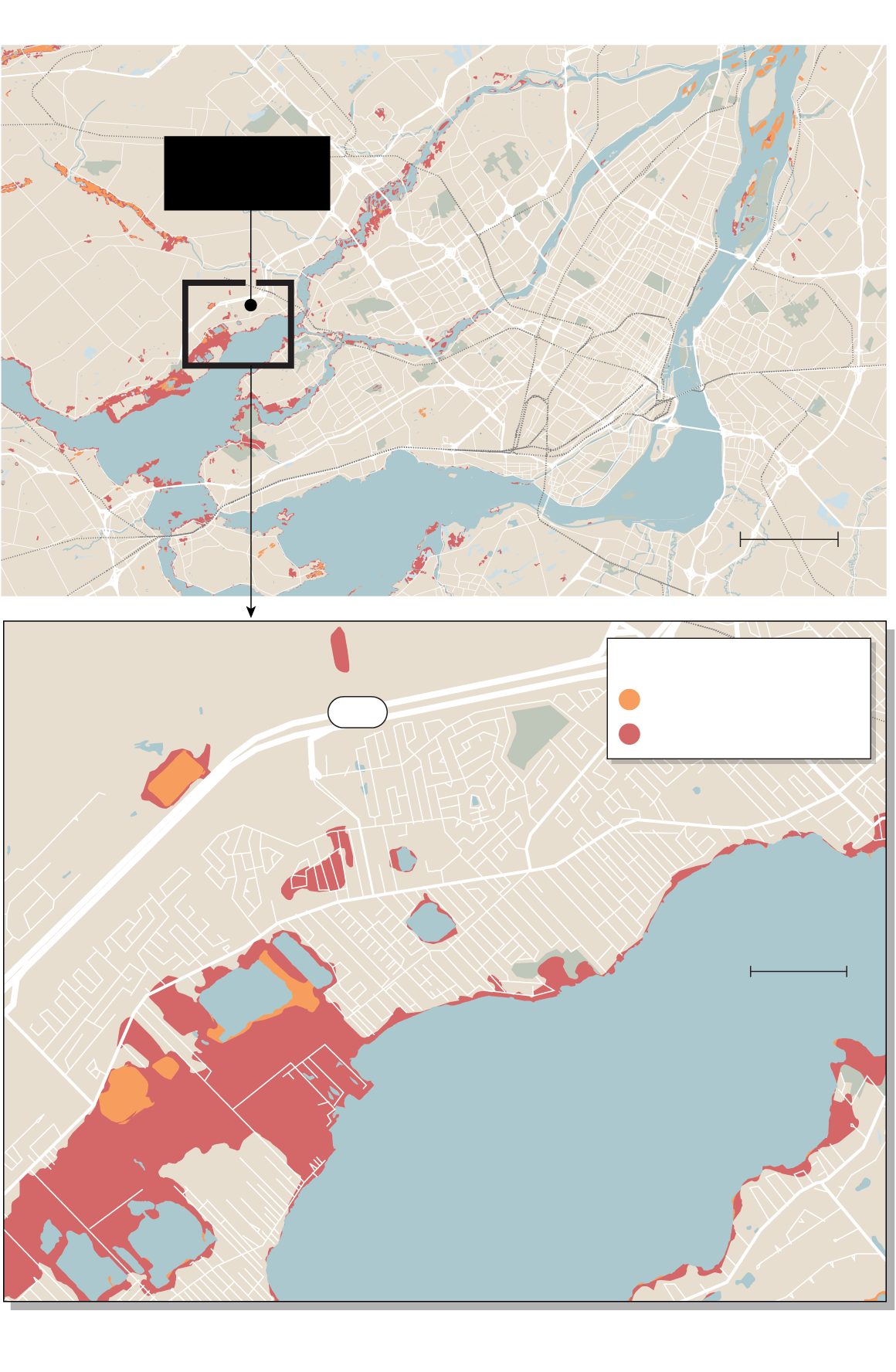 For the evacuees in Sainte-Marthe, a town that grew out of a cottage community, all that mattered was a place to sleep, some dry clothes and the hope of a salvageable home to which they could return. Sébastien Côté said the atmosphere around his home on Saturday night was “like a war zone.” Before buying his home a dozen years ago, he’d received assurances it wasn’t in a flood zone. Now, he faced a new, uncertain reality. “It’s a shock,” he said, standing next to police tape with his daughters aged 8 and 11. “I never thought it could happen here.”