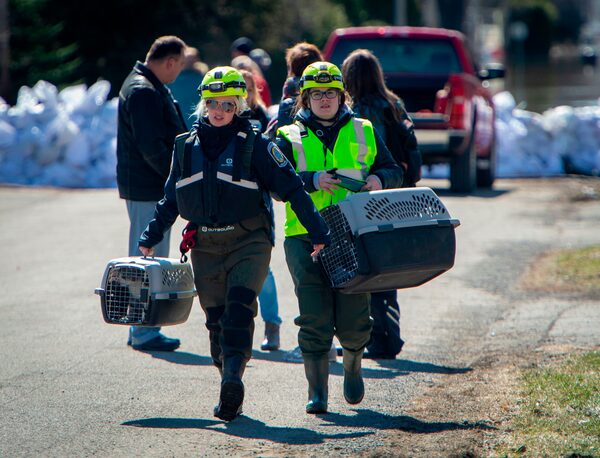Animal rescue and relief operations are undertaken amid flooding in Sainte-Marthe-sur-le-Lac.SEBASTIEN ST-JEAN/AFP/Getty Images