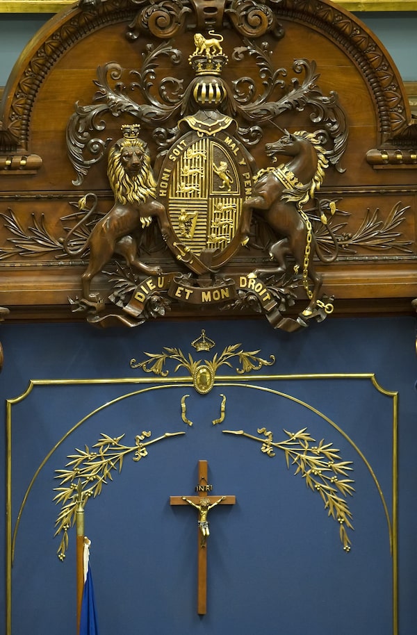 The 2000s, when Quebec’s legislature still had this crucifix above the speaker’s chair, would bring contentious debates about secularism in the province.Clement Allard/The Canadian Press