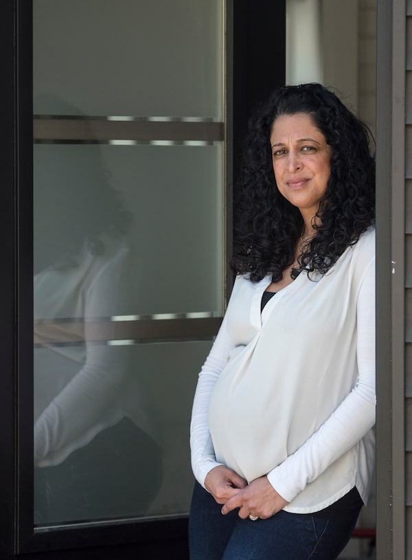 Rishma Pradhan, who is expected to give birth in June, poses for a photograph at her home in Toronto on Thursday, April 2, 2020.Tijana Martin/The Globe and Mail