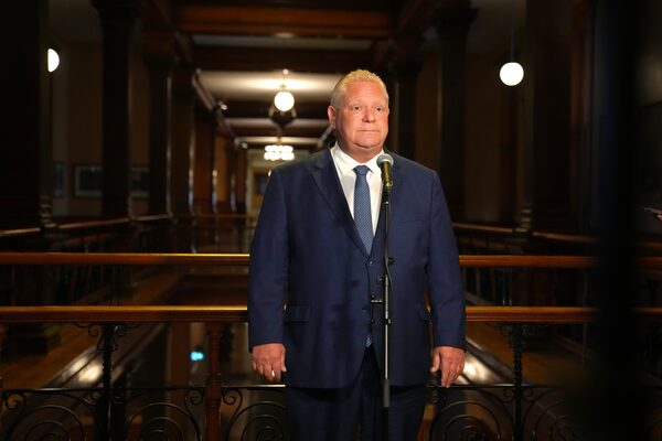Ontario Premier Doug Ford speaks to journalists at the Queens Park Legislature in Toronto on Aug. 25.Chris Young/The Canadian Press