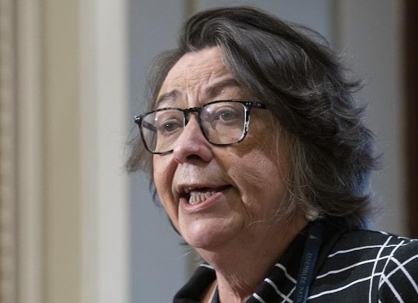 Quebec MNA Claire Samson speaks at a news conference at the legislature, in Quebec City, on June 18, 2021.Jacques Boissinot/The Canadian Press
