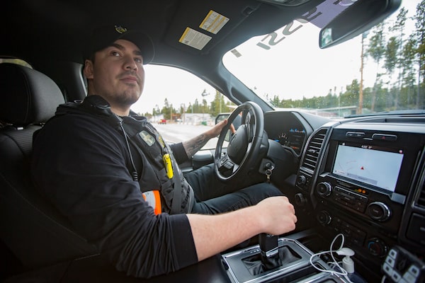 On a recent afternoon in McIntrye, Kwanlin Dun’s officers are standing beside the community’s now melted outdoor rink, where they often play hockey with local kids. Wood smoke rises from faded vinyl bungalows, surrounded by yards full of boats, dented trucks and muddy ATVs. Kids in hoodies skid past on bikes that are too small, and a woman stops on the dusty road and sets down two bulging bags of groceries. Elias Park walks over. Dressed in black, with high boots, tattoos, a duty belt and his bulky Kevlar vest with the yellow letters CSO – community safety officer – embroidered on the back, he looks a lot like a cop. Mr. Park picks up the groceries and the pair wander up the road to the woman’s home, talking. To outsiders, the task may seem like an unusual – if not mundane – one for an officer. But Mr. Park sees helping residents with errands such as this as an important part of his job, one that puts an emphasis on building trust and relationships.