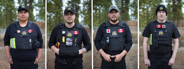 Tyler O’Brien, Elias Park, Jesse Ryder and Michael Carlisle are safety officers for Kwanlin Dun, an urban First Nation in Whitehorse, the Yukon capital.Photography by Crystal Schick/The Globe and Mail
