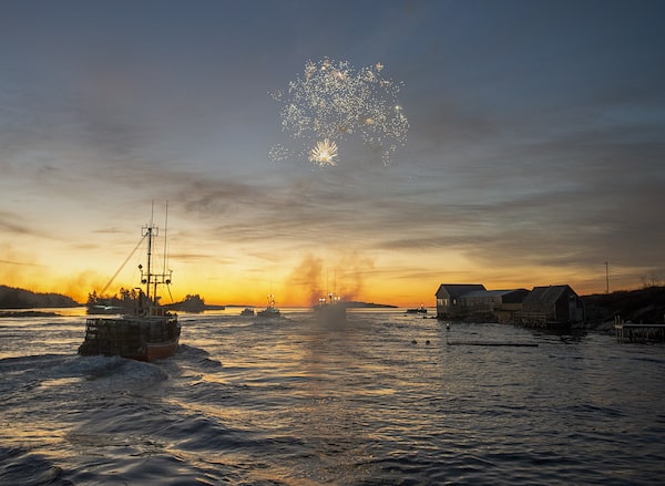Fireworks explode as boats loaded with traps head from the harbour in West Dover, N.S., on Nov. 30, 2020.Andrew Vaughan/The Canadian Press